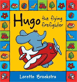 The book is about Hugo the elephant who becomes an unexpected hero when he saves a house from fire by skywriting FIRE above the house with his plane Wilco.That way he alerts the residents and the fire department to the danger. With his handy elephant trunk, Hugo is then first on the ground to help put out the flames.